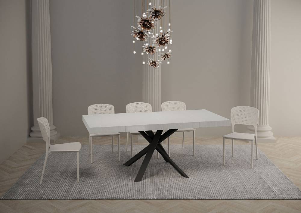 Tavolo allungabile Clerk Premium da 90 cm, dal design moderno dallo stile sofisticato, si adatta a qualsiasi stile di arredamento e si rivela la scelta ideale sia come tavolo da pranzo che come elemento d’arredo per il soggiorno, dove poter accogliere i propri ospiti con stile.Il tavolo allungabile Clerk Premium è in grado di estendersi progressivamente fino a 194 cm capace di ospitare 8 persone.Realizzato con pannelli in nobilitato, gambe in ferro, piano e allunghe con lavorazione a Folding.Il sistema di estensione con guide telescopiche in alluminio rende il tavolo stabile e robusto anche se totalmente allungato, senza bisogno di ulteriori sostegni.Quando non utilizzate, le allunghe non trovano collocamento all’interno della struttura del tavolo e vanno quindi riposte altrove.Prodotto ityhomeMade in ItalyDimensioni:Tavolo chiuso: L.90 P.90 H.76 cmLunghezza con 1 allunga: 142 cmLunghezza con 2 allunghe: 194 cm